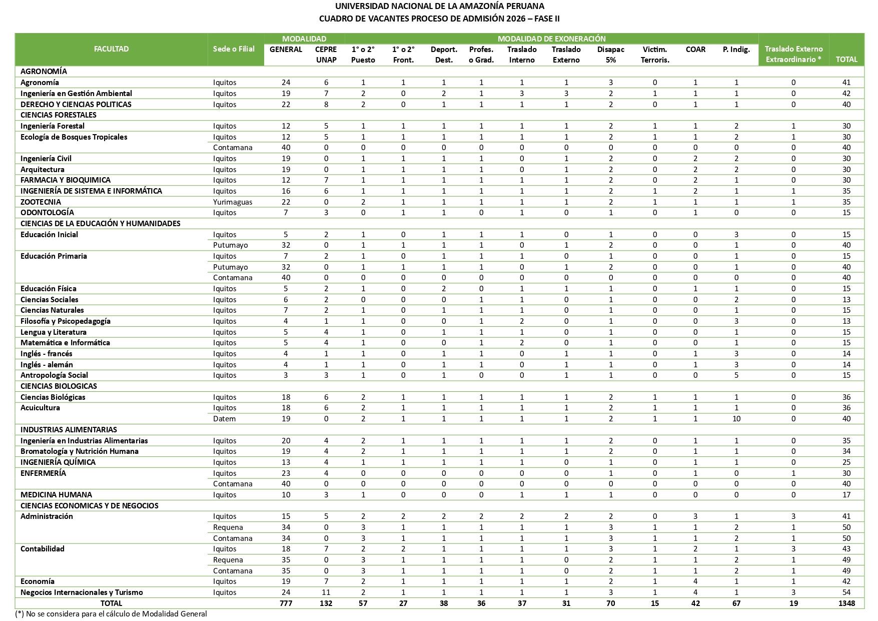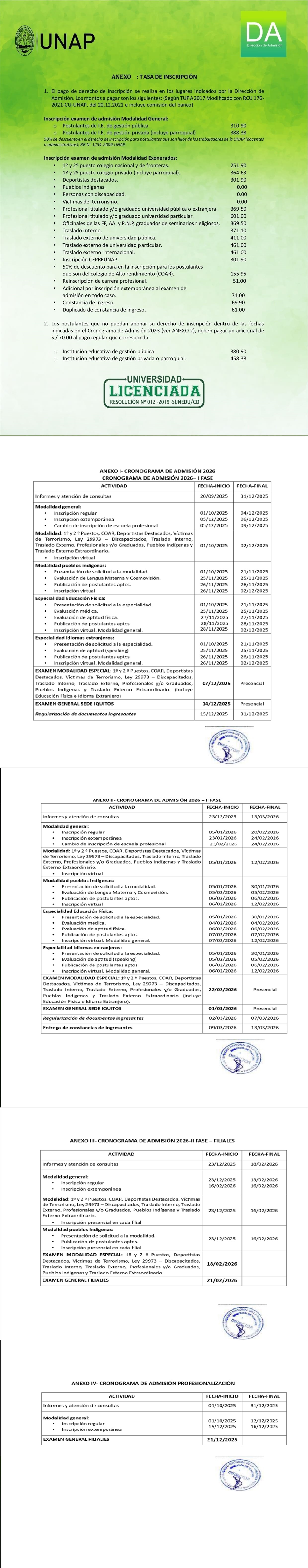 El Examen especial de la modalidad exonerados y preferenciales - II Fase será el 22 de FEBRERO del 2026, mientras que el Examen General- II Fase sede Iquitos se dará el 01 de MARZO del 2026, y será presencial